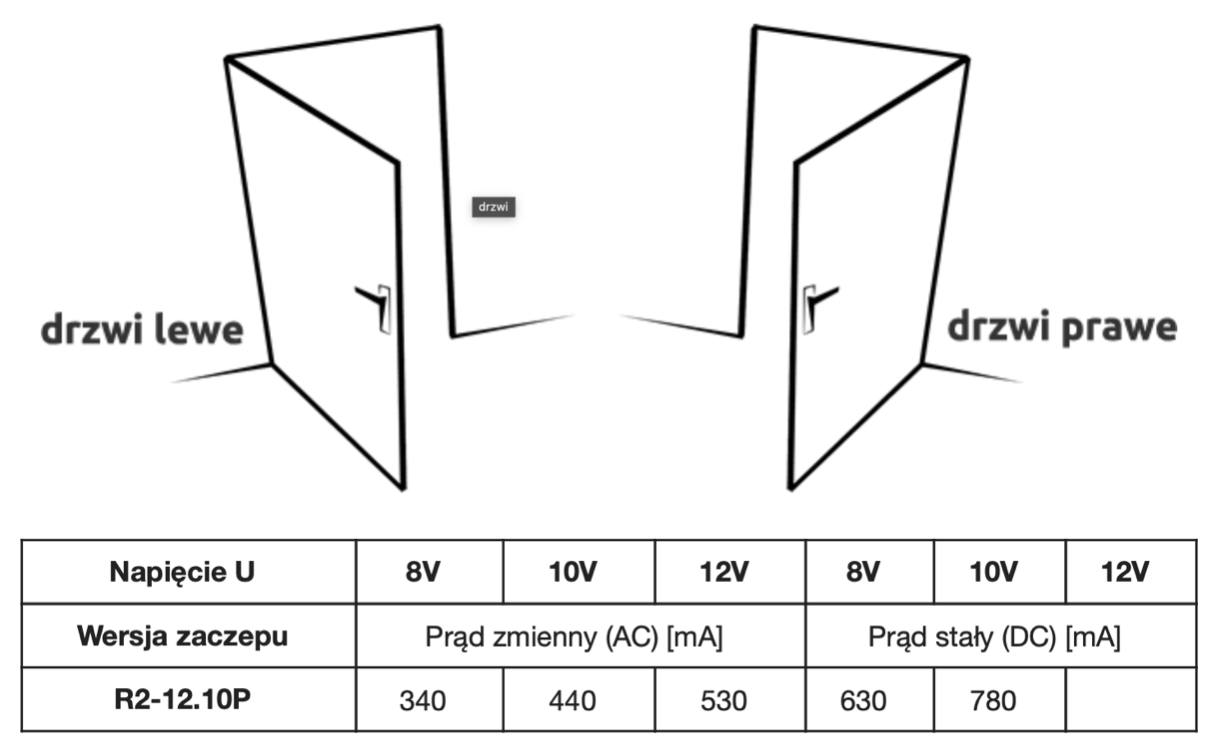 ⏩ Wersja: Podstawowa - umożliwia odblokowanie drzwi po podaniu napięcia na cewkę