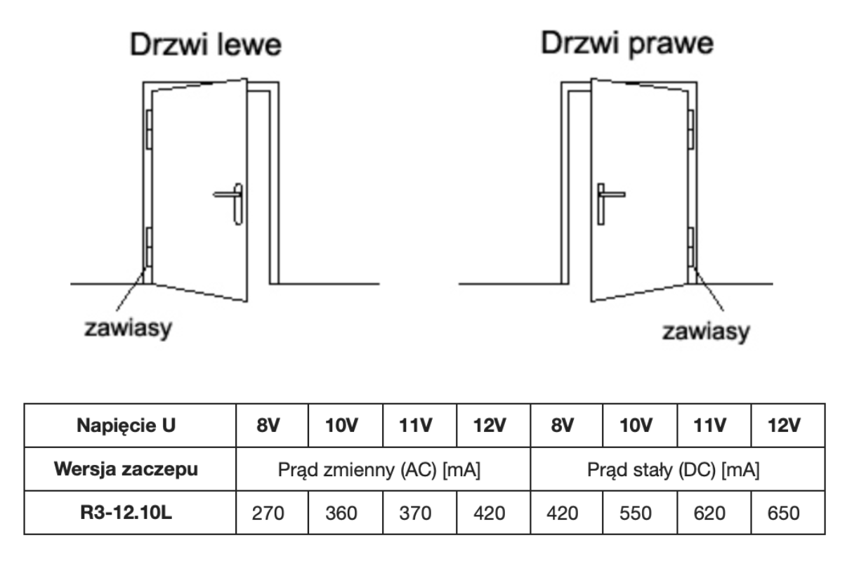 ⏩ Wersja: Podstawowa - umożliwia odblokowanie drzwi po podaniu napięcia na cewkę