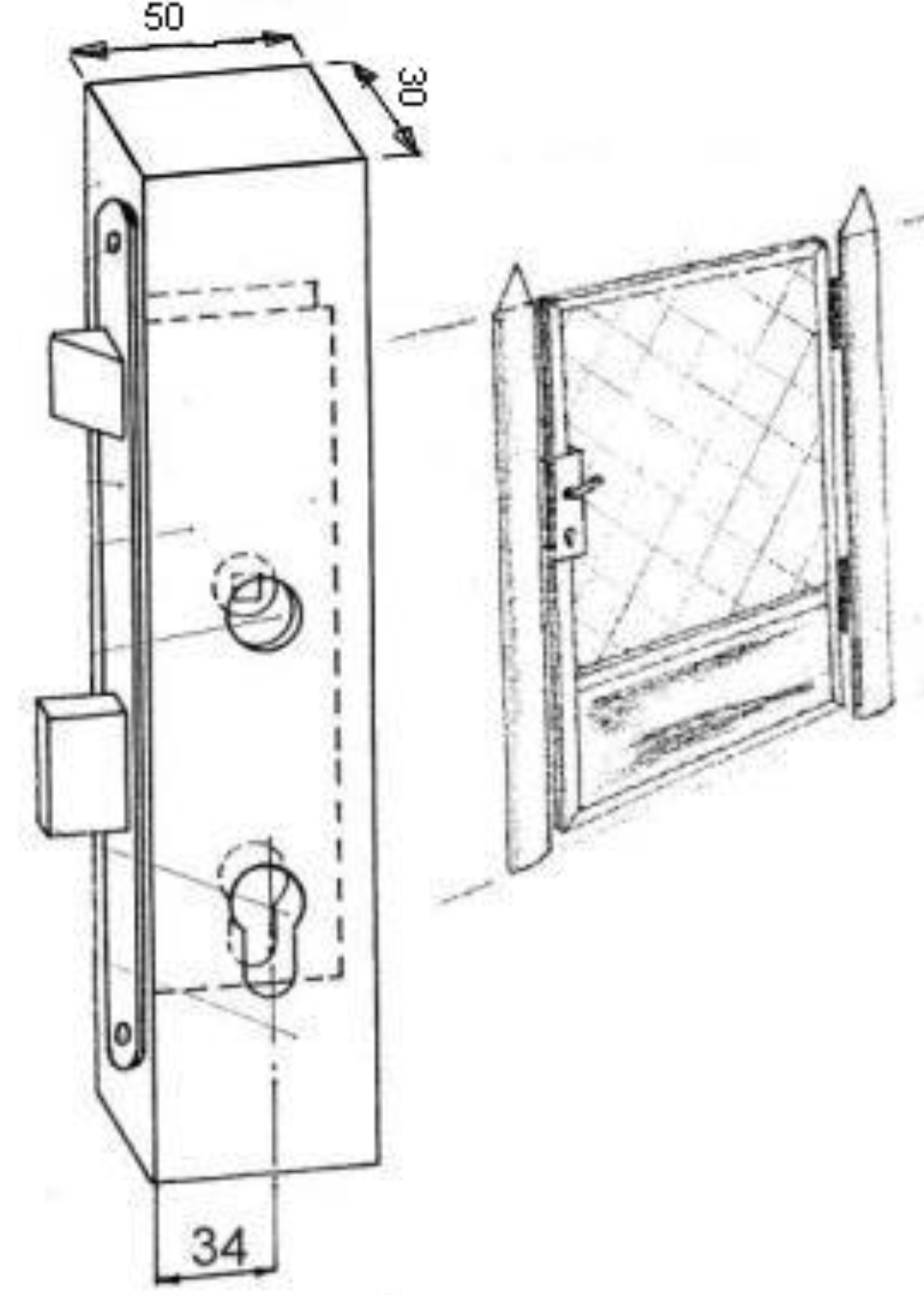 Kaseta z zamkiem zapadkowo - zasuwkowym o przekroju 50x30