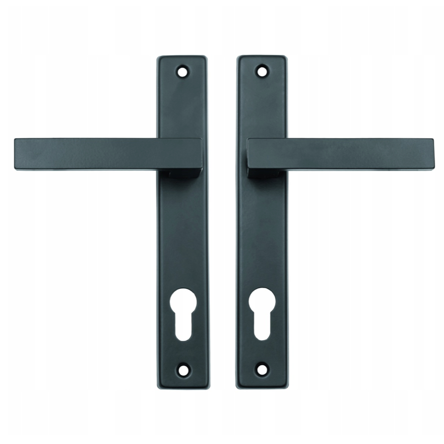 Solidna i estetyczna klamka do drzwi, bram oraz furtek, wykonana z trwałego aluminium i wykończona w kolorze antracytowym (RAL7016). Dzięki funkcjonalnemu rozstawowi 90 mm idealnie pasuje do najczęściej stosowanych zamków drzwiowych.