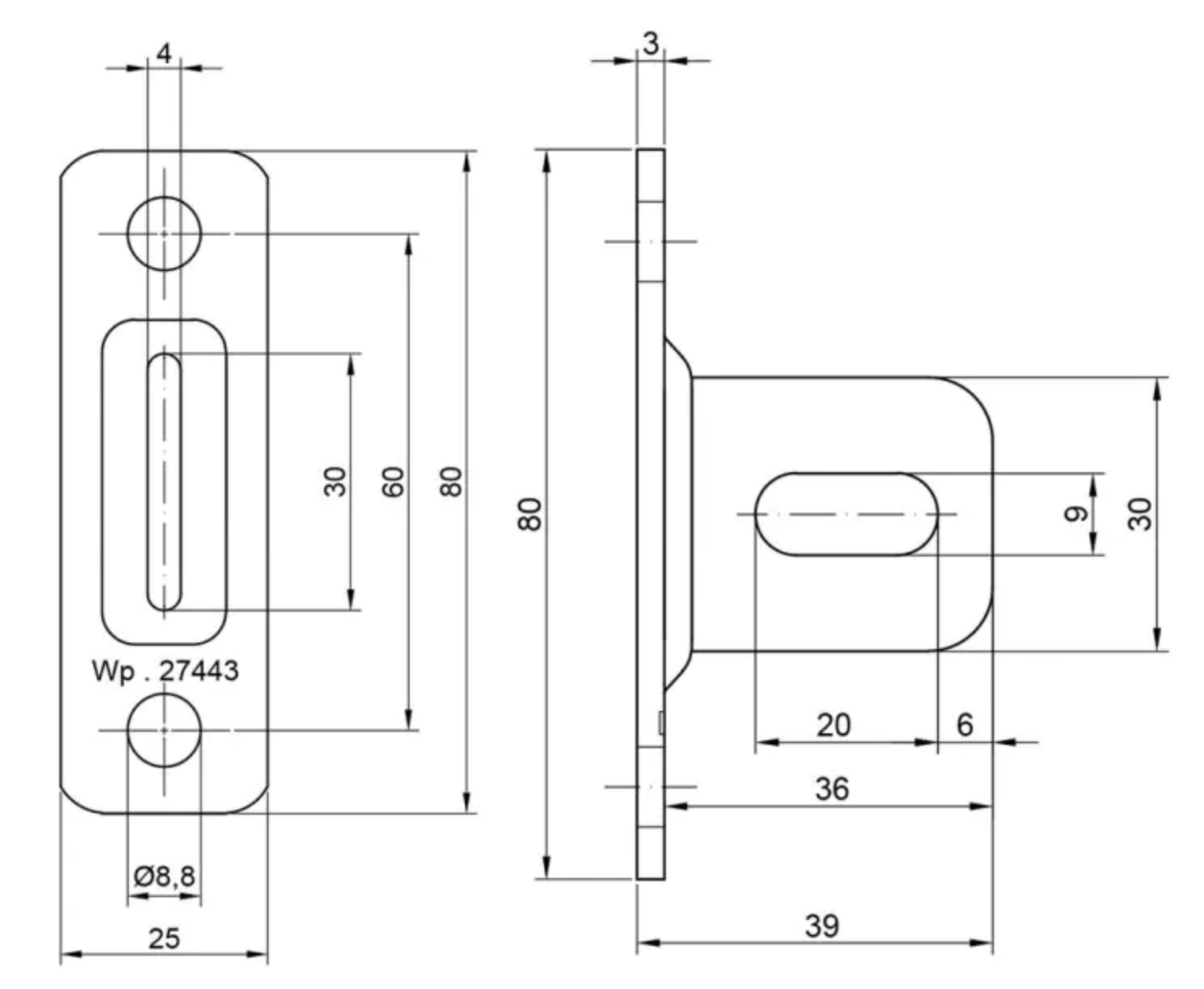 Zastosowanie tego uchwytu pomoże w prostym i szybkim montażu przęsła ogrodzeniowego do słupa, a otwór w kształcie fasolki pozwala na wygodną regulację przęsła.