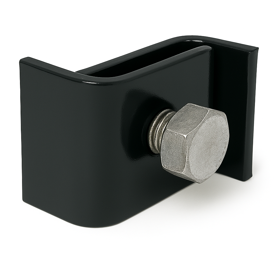 To mocowanie łączy w sobie funkcjonalność i estetykę. Ocynkowana stal z dodatkową powłoką proszkową gwarantuje odporność na korozję i uszkodzenia, a elegancki kolor RAL9005 czarny nadaje konstrukcji spójny, nowoczesny wygląd. Produkt idealnie sprawdzi się w systemach ogrodzeniowych, przy montażu bram i furtek oraz w innych konstrukcjach wymagających solidnego i trwałego mocowania.