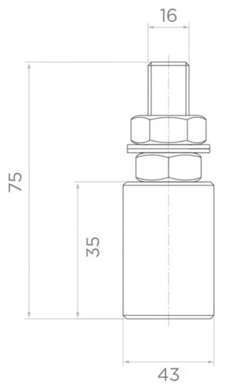 Rolka prowadząca o średnicy 43 mm służąca do utrzymania szyny (ceownika lub zetownika) w pionie w trakcie zamykania i otwierania.