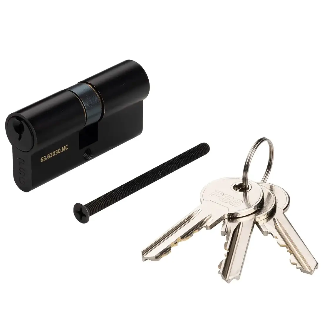 - Wkładka bębenkowa PSG 35/35 czarna – mosiądz, 6 zastawek dla wysokiego poziomu bezpieczeństwa, zgodna z normą EN1303:2015. Elegancki czarny kolor, trwałość i niezawodność. W zestawie 3 klucze i śruba montażowa.