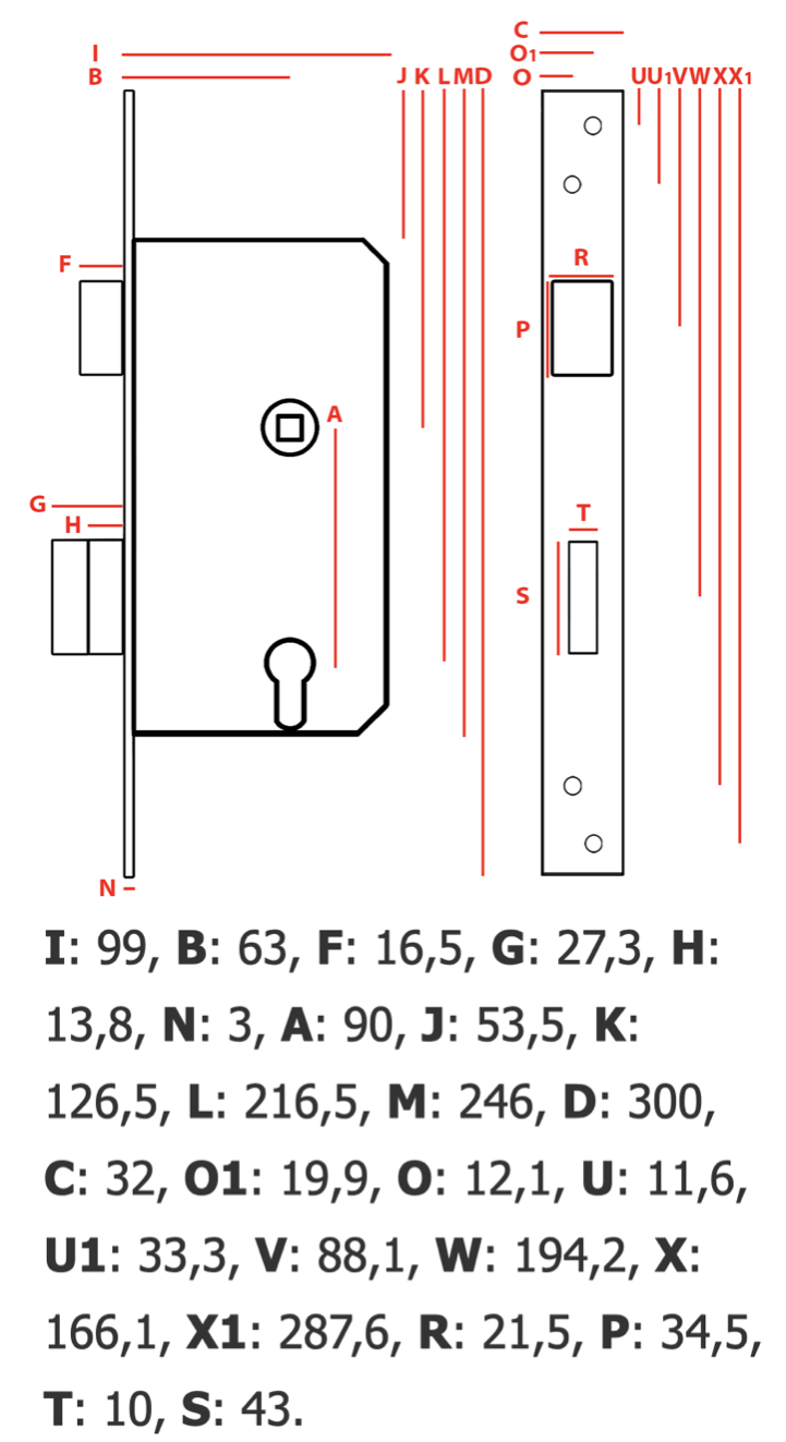 Zamek bramowy firmy Jania na wkładkę do drzwi lewych.