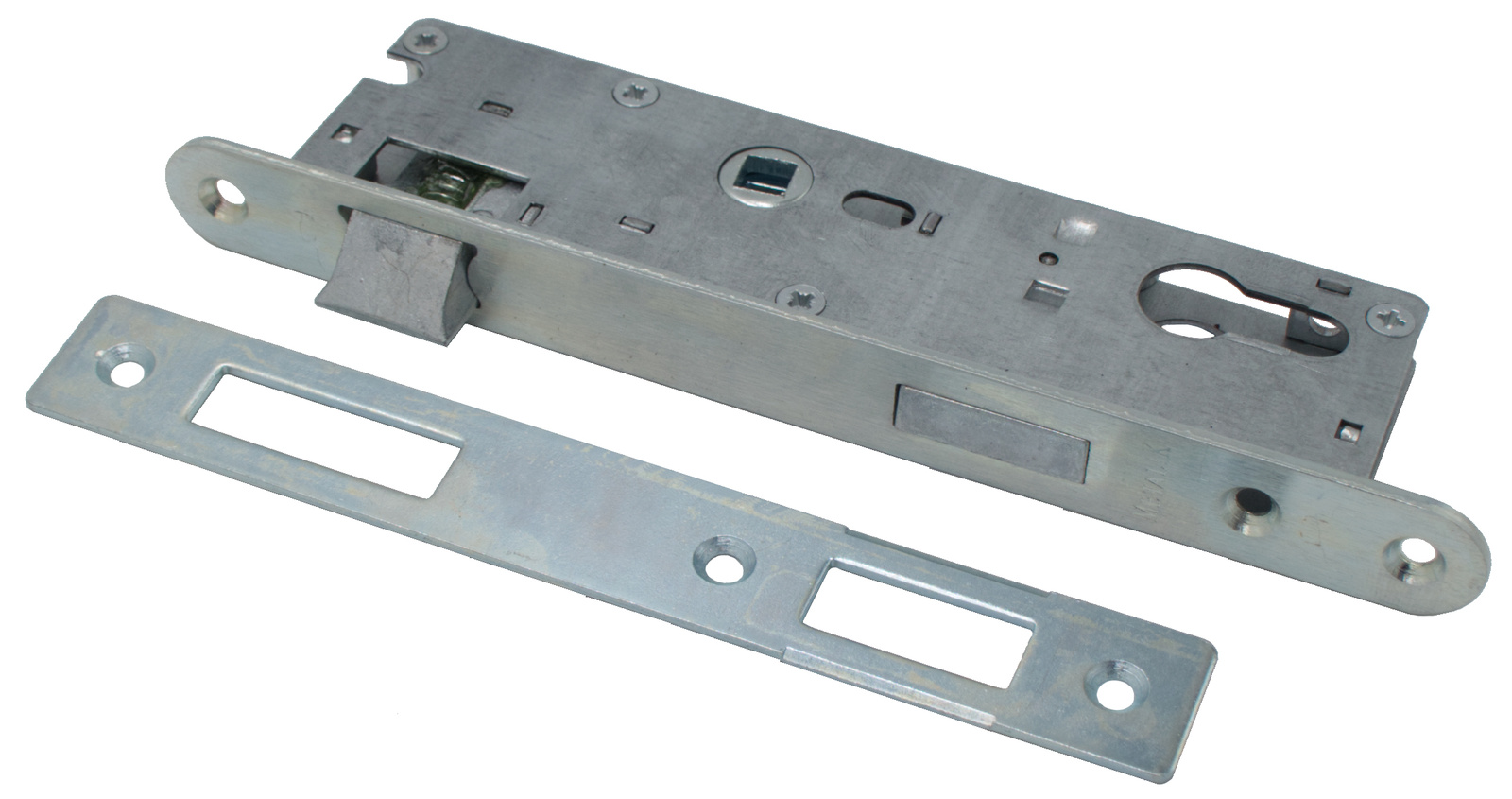 Zamek zapadkowo - zasuwkowy firmy Metalik o wymiarach funkcyjnych 72/34 na wkładkę.