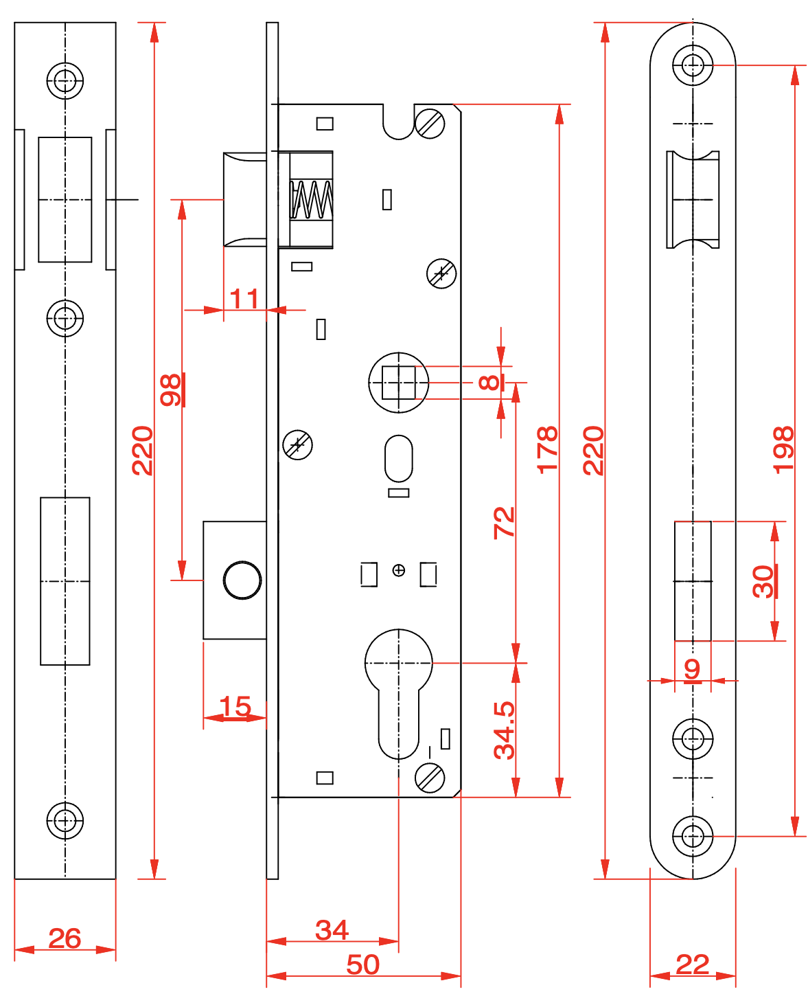• Wymiary zamka zapewniają wszechstronne zastosowanie
