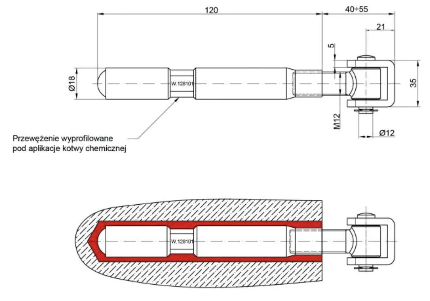 ✅ Posiada przewężenie wyprofilowane pod aplikację kotwy chemicznej