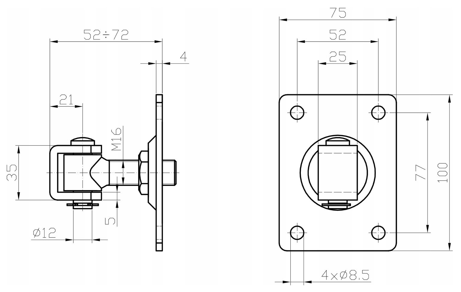 Zawias regulowany do przykręcenia M16 100x75x4 mm