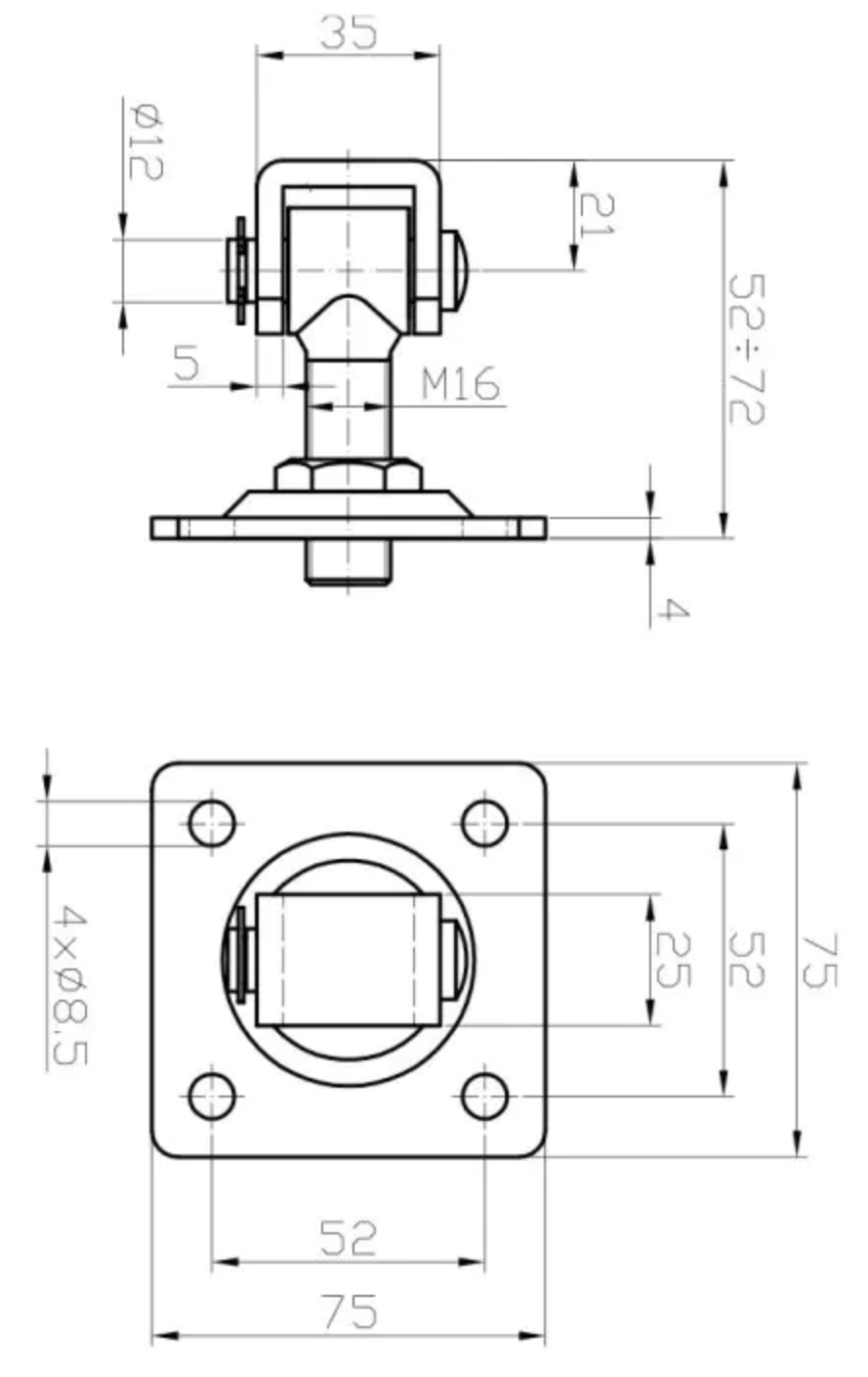 Zawias regulowany do przykręcenia M16 z szyldem 75x75x4 mm