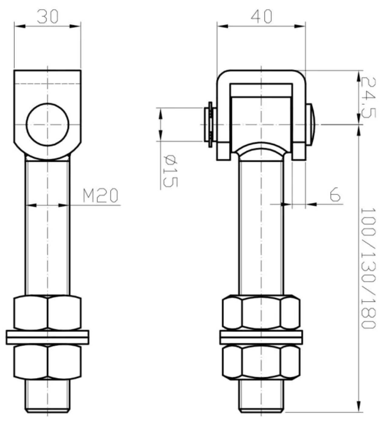 Stalowy zawias regulowany ze śrubą M20, który jest przeznaczony do przykręcenia. Zawias jest dedykowany do montażu bram skrzydłowych oraz furtek.