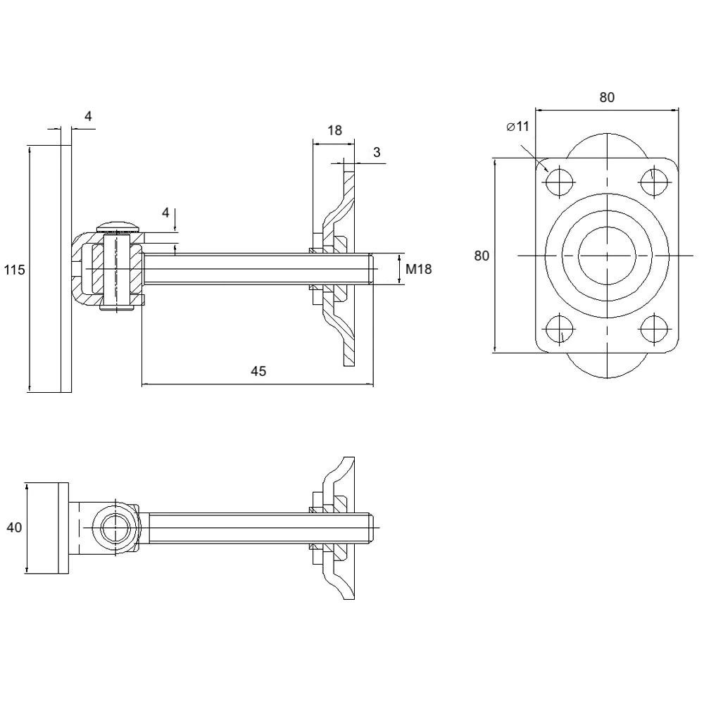 Zawias regulowany M18 z szyldem 115x40 mm i platerem 80x80 mm